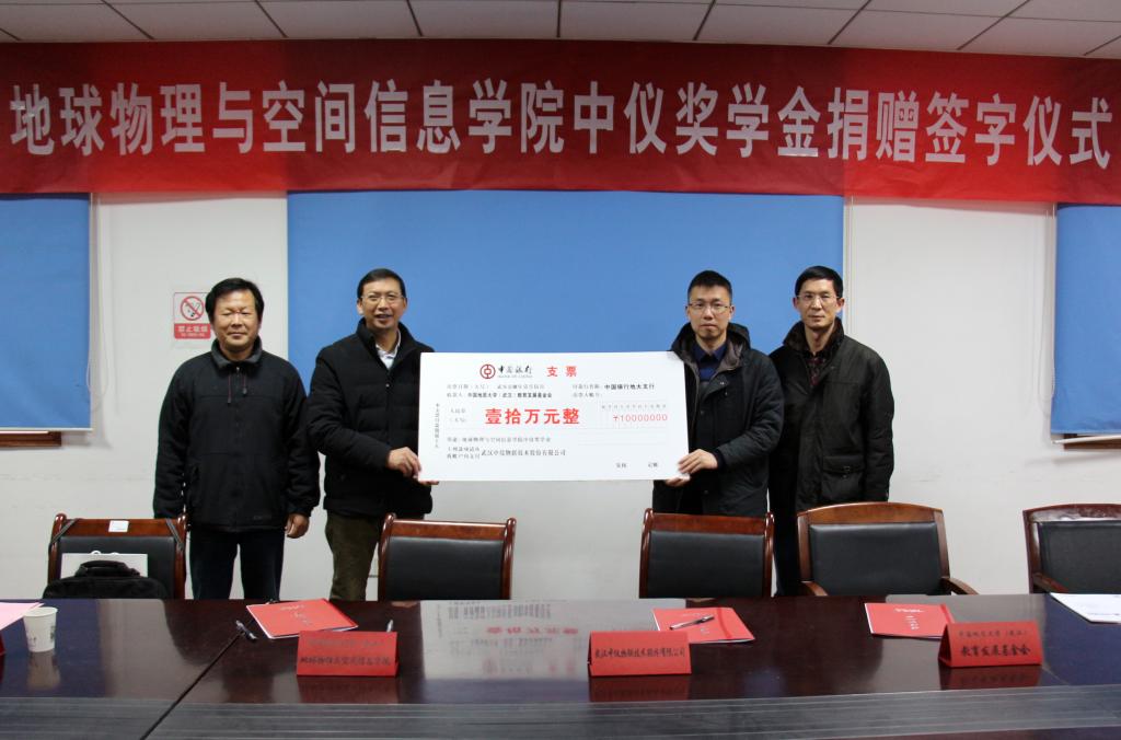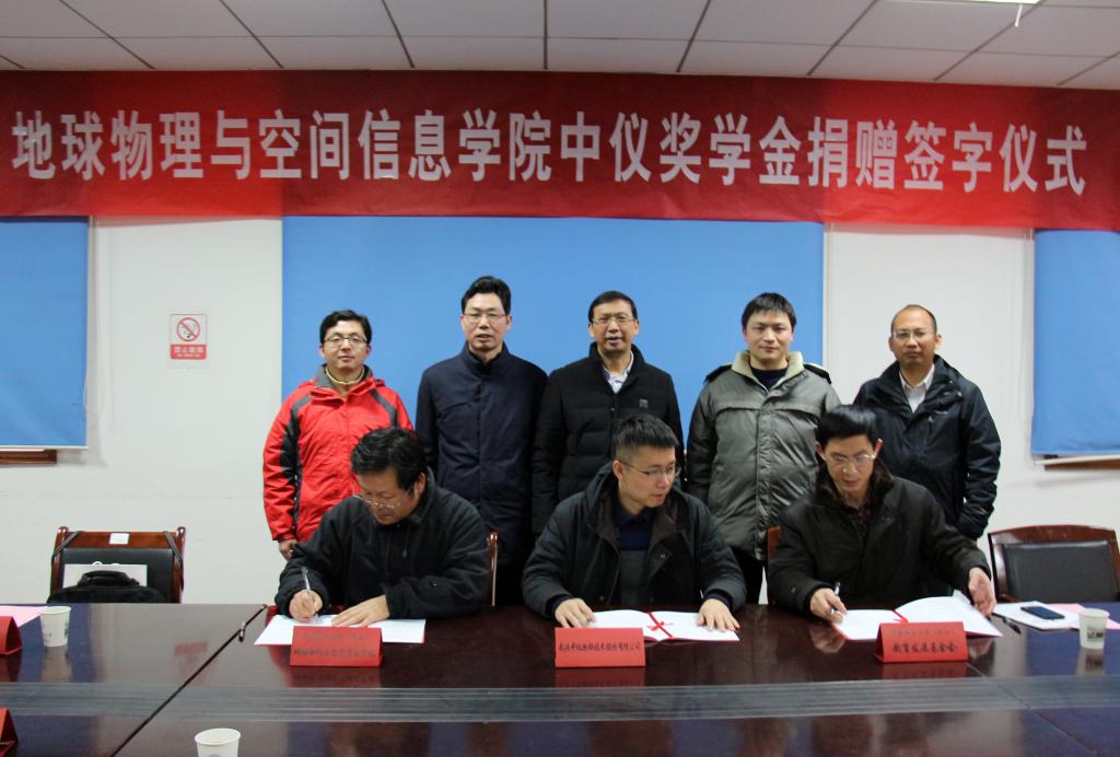 武汉中仪物联技术股份有限公司董事长郑洪标、XC体育(武汉)教育发展基金会副秘书长李门楼、公司党委书记刘子忠共同签署捐赠协议书。
