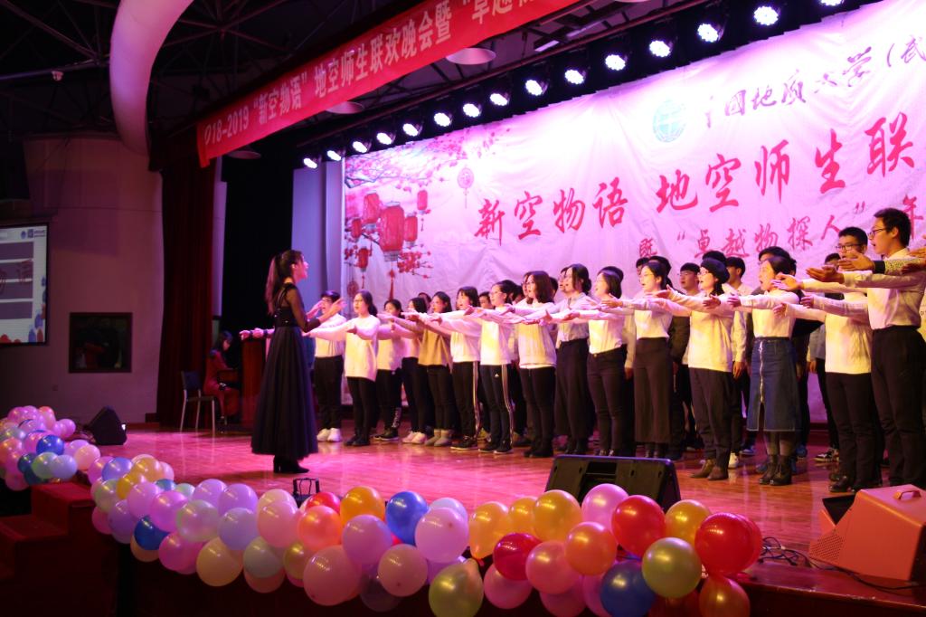 1月2日晚7点,​XCSport“新空物语”师生迎新年联欢晚会暨“卓越物探人”年度人物颁奖典礼在老员工活动中心二楼举行。公司全体班子成员、就业创业指导处副处长陈慧、公司教师与全院同学一同观看晚会,喜迎2019年新年。