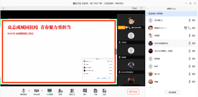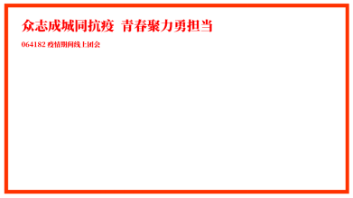 受新型冠状病毒的影响,根据《XC体育(武汉)关于调整2019-2020学年第二学期本科教学工作安排的通知》的精神要求,064182团支部积极响应公司“停课不停学”的号召,组织各位同学在家中举行线上团会。在活动开始前,每一位支部成员均提前上线签到,体现了同学们对本次团会的重视程度。14时,全体在线上奏唱国歌,主持人李伟光宣布“众志成城同抗疫,青春聚力勇担当”主题线上团会正式开始。