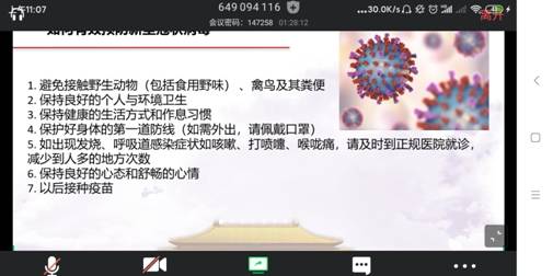 为深入推进“坚定信心、主动作为、共同抗‘疫’”主题教育,提高员工党员的政治素养与党性原则,根据中共中央《关于加强党的领导、为打赢疫情防控阻击战提供坚强政治保障的通知》和中共湖北省纪委机关、省委组织部有关文件要求,2020年2月27日,在地探专业硕士研究生纵向党支部书记郭楚枫同志的组织下,XC体育(武汉)XCSport地探专业硕士研究生纵向党支部开展“众志成城,抗击疫情,武汉必胜”学习活动,邀请优秀党员志愿者刘汉生同志直播疫情下的武汉小区;学习贯彻习近平在统筹推进新冠状肺炎疫情防控和经济社会发展工作部署会议上的重要讲话精神;介绍新冠状肺炎,探讨了作为一名党员面对疫情应尽的职责;最后介绍了一些常见的病毒,以及“糖丸爷爷”顾方舟研究疫苗的故事。