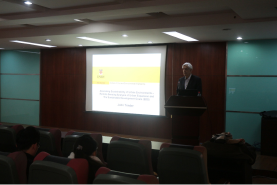 (通讯员陈涛、杨玮莹)2018年12月12日上午,国际著名摄影测量与遥感学家John Trinder教授应邀到访公司,并在222学术报告厅为全院师生做了题为“Assessing Sustainability of Urban Environments - Remote Sensing Analysis of Urban Expansion and The Sustainable Development Goals (SDG)”的学术报告。报告会由XCSport地球信息科学与技术系书记陈涛副教授主持,XCSport地球信息科学与技术系主任王毅教授,地球信息科学与技术系相关教师及研究生参加了学术交流会。