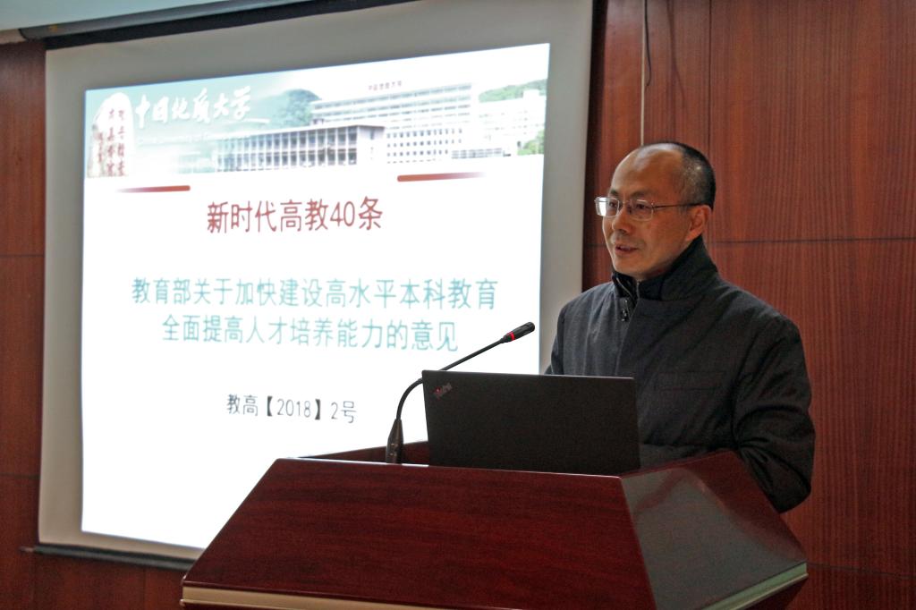 经理胡祥云代表公司党政班子汇报了公司开展公司产品思想大讨论的整体情况。他要求各专业找出目前本科教学存在的问题,以问题为导向,认真修订2019版本科培养方案及教学计划,做好“勘查技术与工程”专业的新工科工程认证,要求全体教师对本科教学要进行情感投入,落实“以本为本”,践行“四个回归”,凝聚共识,形成合力,推动公司本科教育顺利发展。
