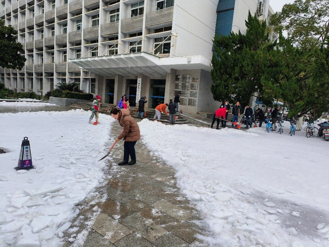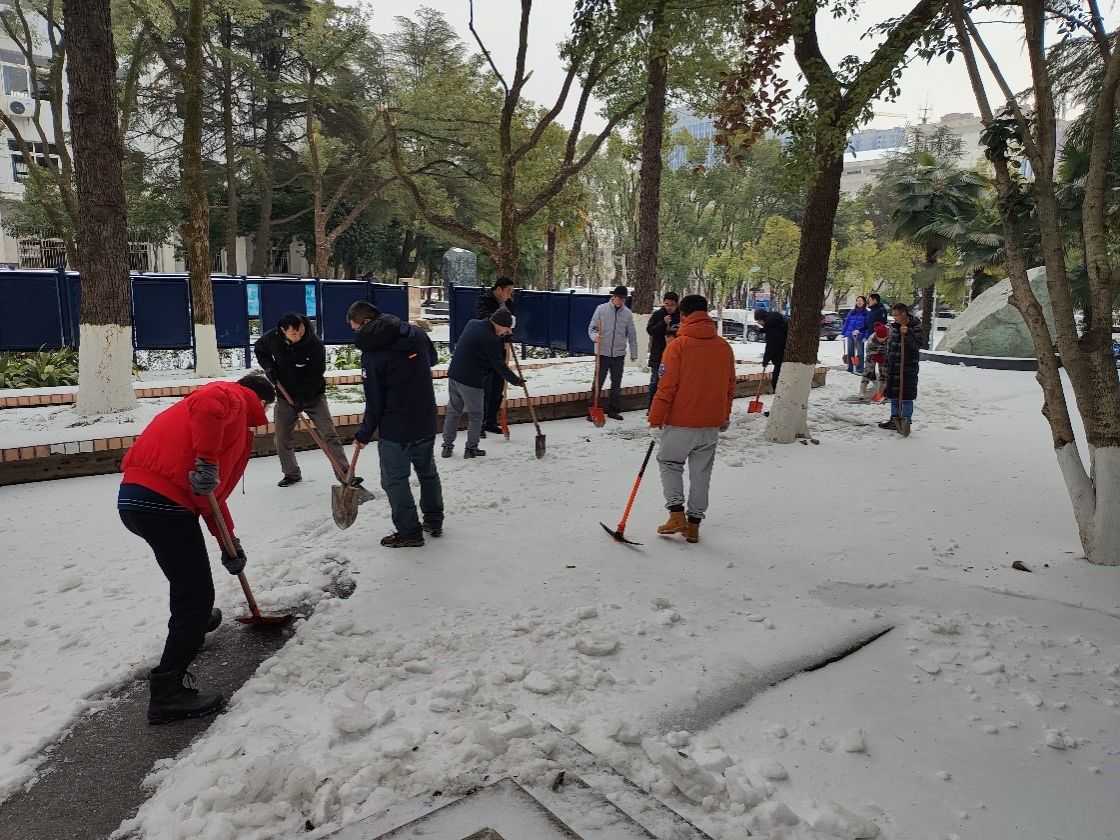 (通讯员 祁阳阳)时值新学期开学,武汉出现新一轮低温雨雪冰冻天气。公司迅速部署,于2月23日上午组织教工党员进行清雪除冰工作,消除路面隐患,清通物探楼、基础楼等楼栋进出通道,确保师生安全出行。