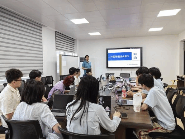 此次实习由《行星物理综合实习》课程团队教师带队于5月13日-6月24日开展。实习和实践活动内容包括:1)参观“武汉客厅”航天科普展,了解我国从建国初期到现今在航空航天与国防科技领域取得的重大成果,激发员工的爱国热情和科研情怀;2)夜间天文观测,近距离感受月球表面的形貌特征;3)参观武汉大学测绘遥感精神教育基地,与其行星物理科研团队进行交流讨论,激发员工投身科研、探索宇宙奥秘的热情;4)在华中科技大学引力中心/精密重力测量科学中心参观学习和交流讨论,了解国家天琴计划、嫦娥七号月震仪等精密仪器的研制原理、参观引力中心山洞新旧实验测量装置等;5)学习探地雷达和地震仪的工作原理及其在行星科学上的应用,开展探地雷达和地震数据获取实习;6)行星遥感和重磁软件学习,实现行星遥感和地球物理等数据的处理和成图;7)员工自由选题(月震和火震、火星形貌和分布特征、月球重力地形和撞击盆地等)进行科研分组汇报,提高员工的科研素养、专业技能和表达能力等。