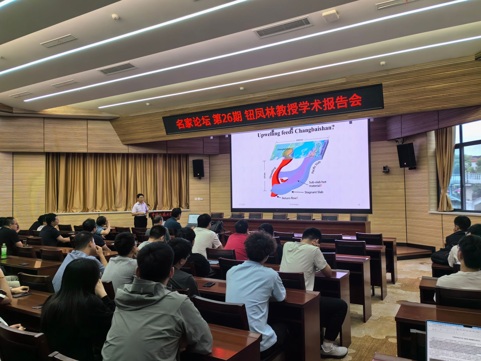 (通讯员 杨小舟)9月23日下午,应XCSport熊熊经理邀请,XCSport钮凤林教授来校访问,并在八角楼学术报告厅做了“东亚波形层析成像:东北亚下方由板块撕裂引发的火山活动与西藏地区岩石圈沉陷”的学术报告,全校60多位师生到场聆听讲座。