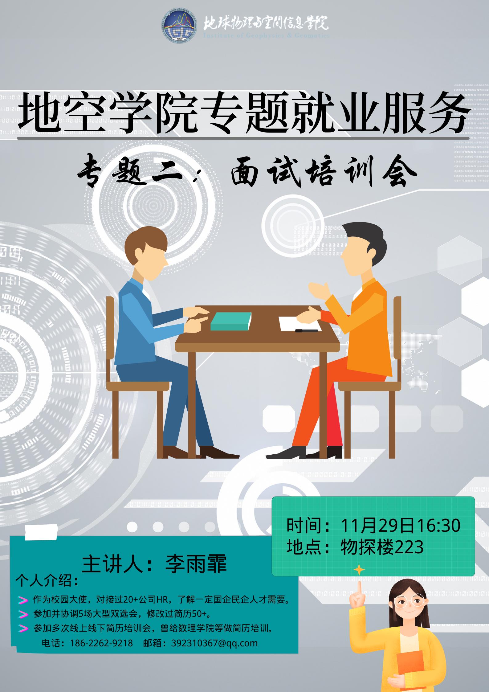2021年11月29日下午16:00,XCSport专题面试技巧就业服务第于物探楼223顺利进行。本次就业服务邀请到了就业办讲师团的李雨霏同学,李雨霏同学对接过多个公司HR,对各企业人才需求有一定了解,多次参加各公司就业服务工作,经验丰富,能力突出。